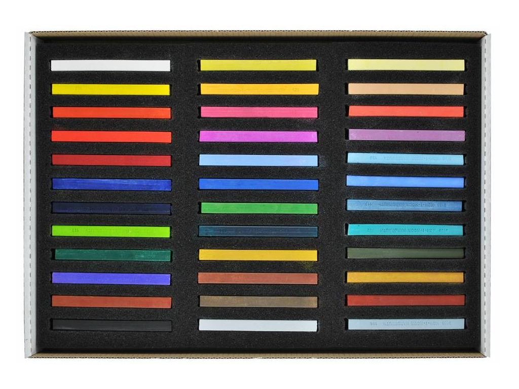 36-kusová farebná sada umeleckých olejových kried, dodávaná v papierovej krabičke. Súprava umeleckých mastných tvrdých pastelov, kresliacich prevažne na papierovom podklade.
