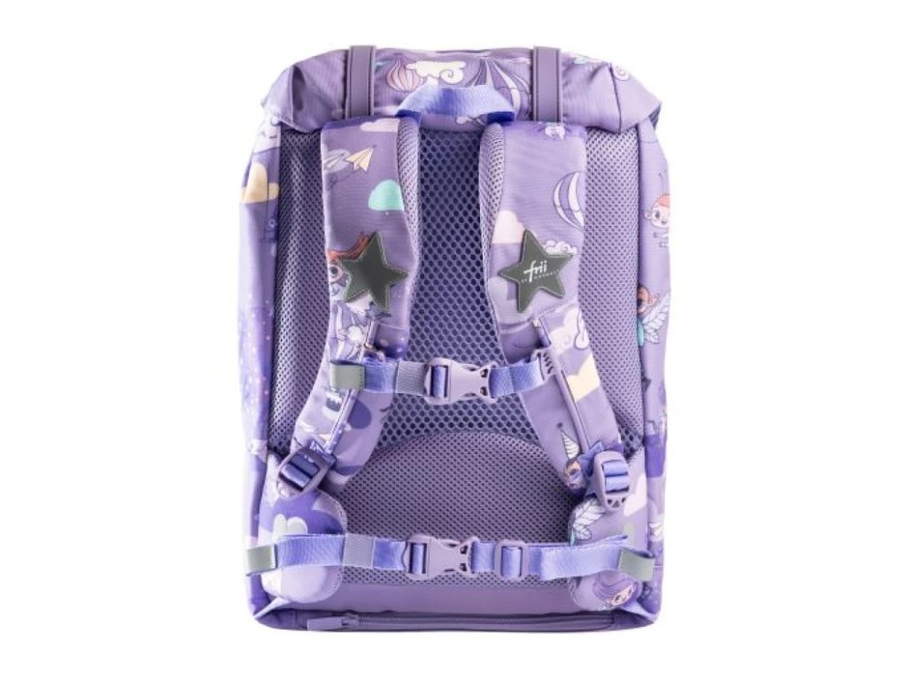 Školské tašky Frii of Norway skvele sedia na detskom chrbte. Základom opory nosného systému je vyberateľná, ergonomicky tvarovaná hliníková lišta, ktorá podporuje správne držanie tela a zabraňuje taške ohýbať sa a meniť tvar. Celá plocha tašky, ktorá sa dotýka chrbta, je príjemne priedušná a mäkká, nikde netlačí.