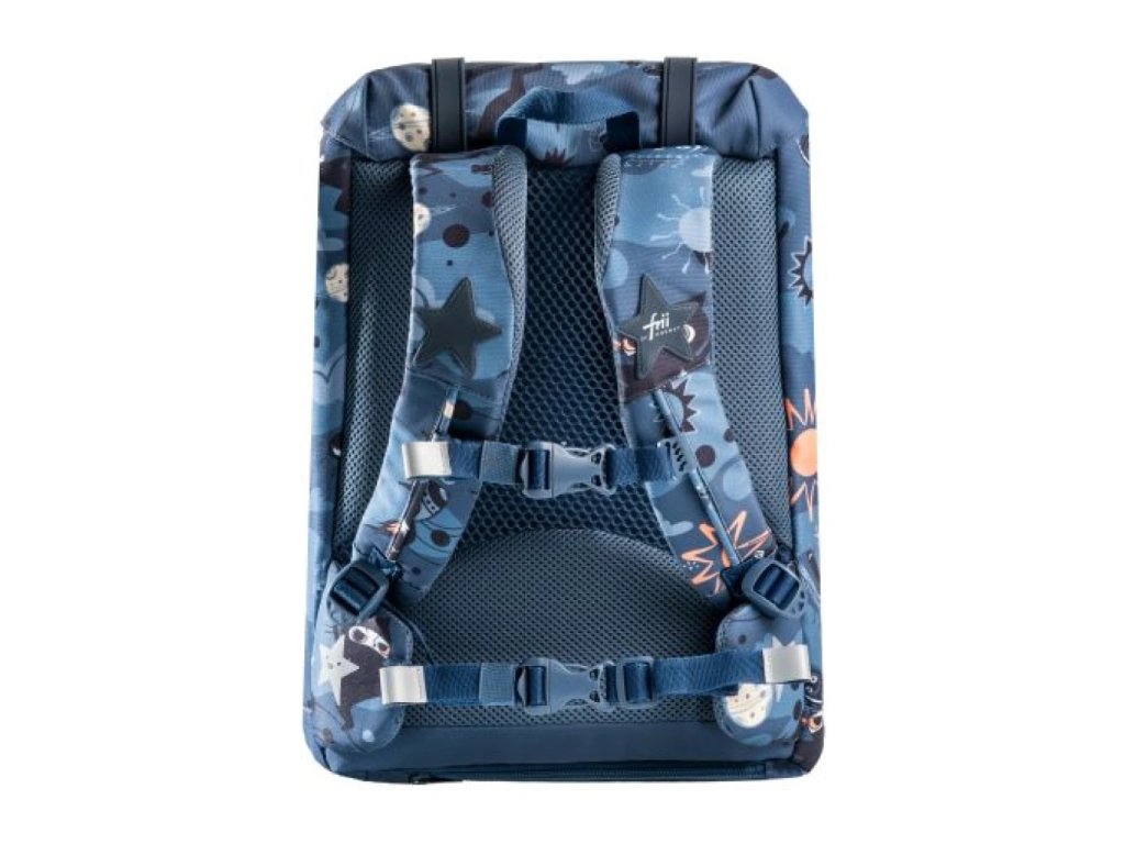Školské tašky Frii of Norway vynikajúco pasujú na chrbát. Základom je ergonomicky tvarovaná hliníková lišta, ktorá podporuje správne držanie tela a zabraňuje taške ohýbať sa. Lištu je možné aj vybrať. Vystužené ramenné popruhy sú známe svojím pohodlím. Panvové popruhy pomáhajú odťažiť chrbát dieťaťa a rovnomerne rozkladať váhu nákladu. Na výrobe týchto tašiek spolupracovala aj s chiropraktička Andrea Nodrbo. Oceníte aj novinky ako sieťka na desiatový box, vrecko na fľašu, karabína na kľúče alebo školský čip, menovka či vrecko na tablet.