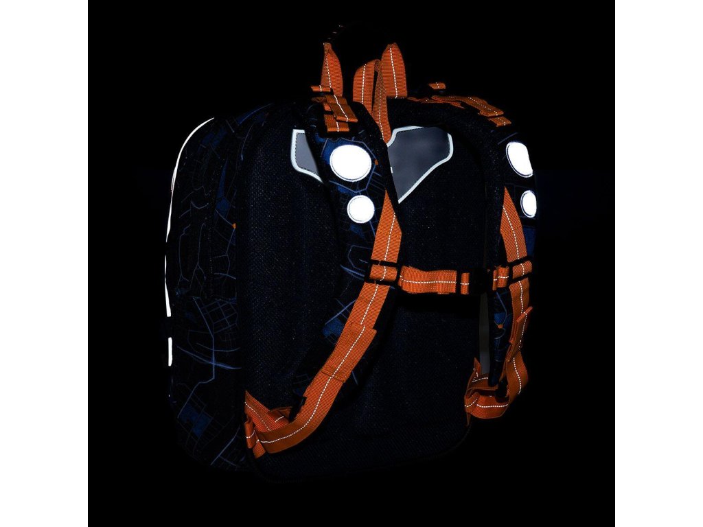 Hlboké predné vrecko poslúži na umiestnenie krabičky na desiatu alebo na peračníka. Nájdete tu aj odnímateľnú karabínku na kľúče. Reflexné prvky sú samozrejmosťou.