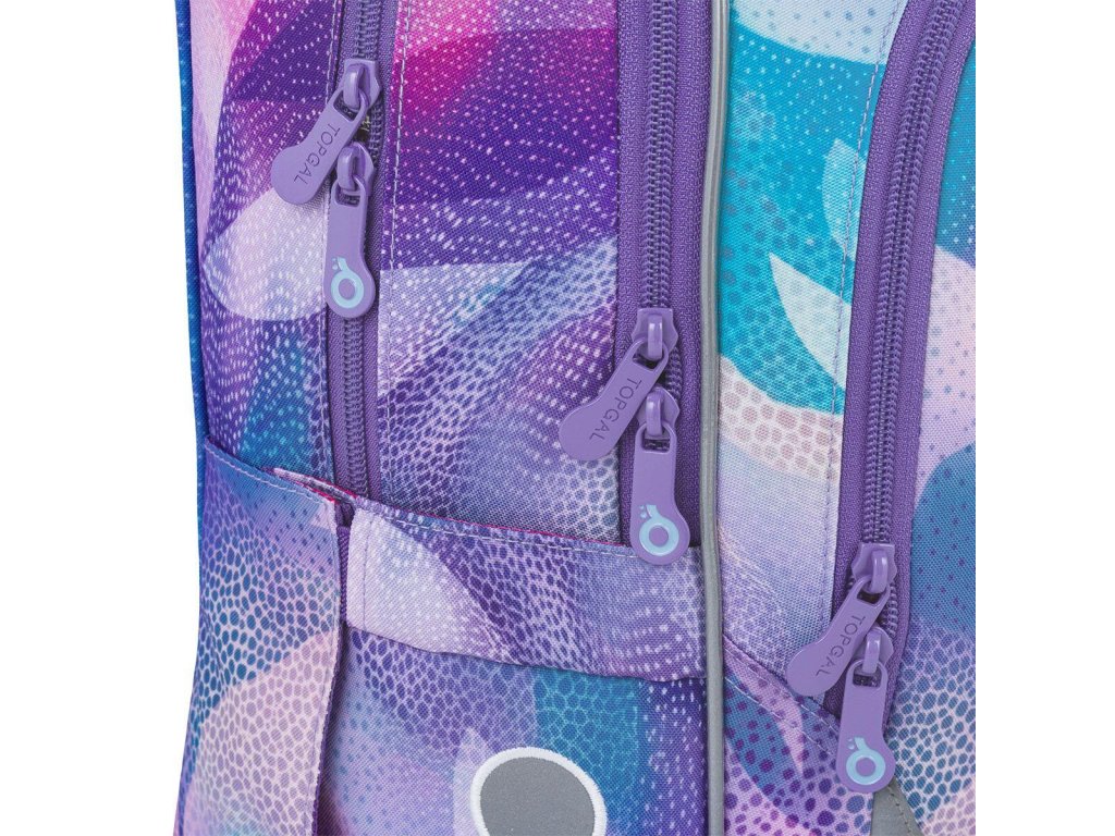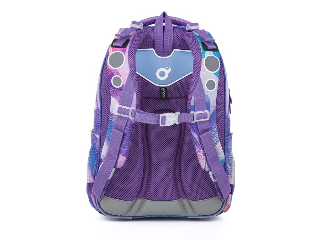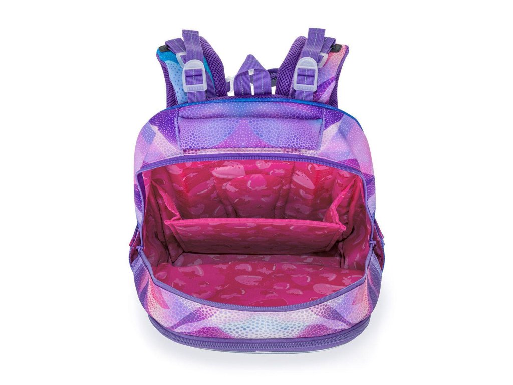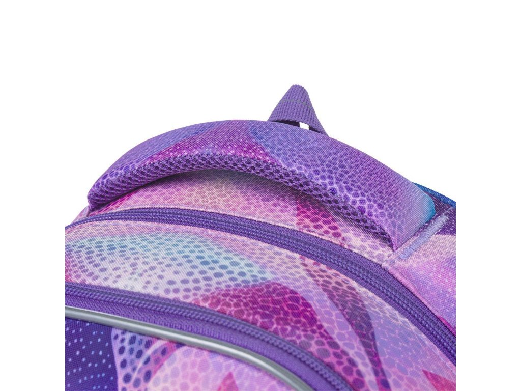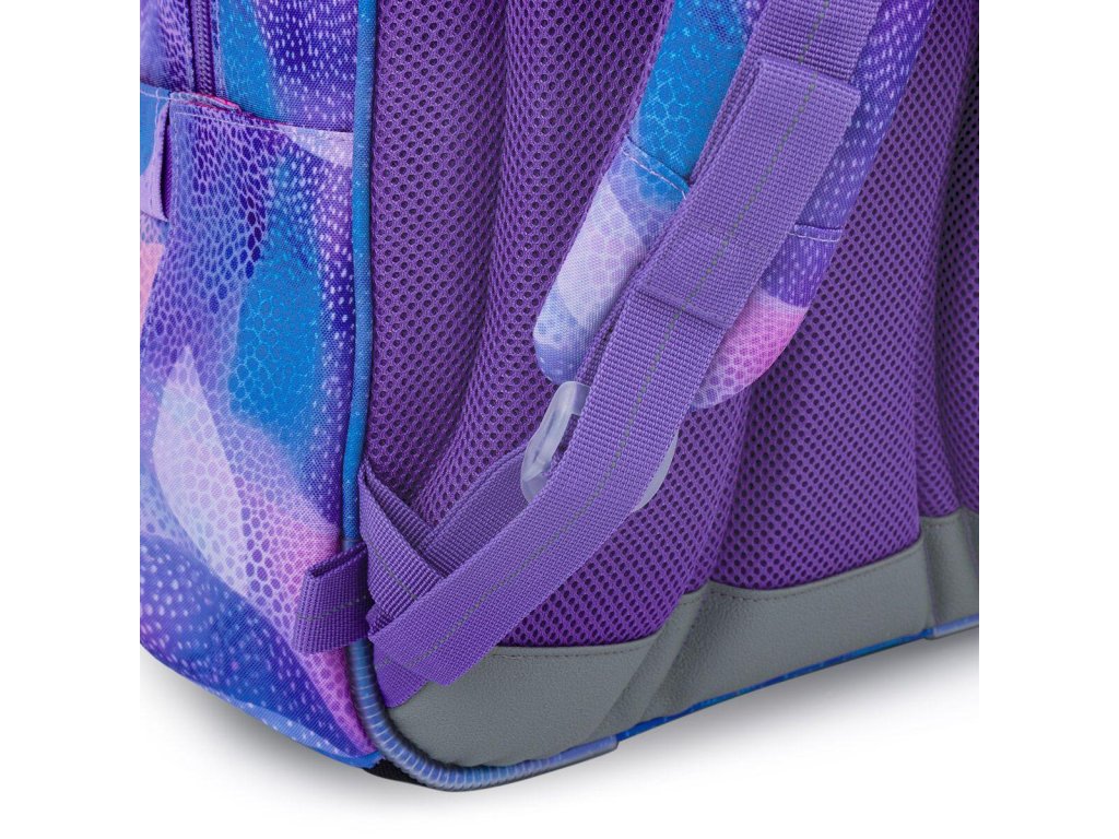 Školská taška LORI 26009 je vhodná od výšky 125 cm a vďaka svojmu objemu a prepracovanej konštrukcii využiteľná až do 6. ročníka základnej školy. Jemný pastelový dizajn v odtieňoch fialovej, ružovej a tyrkysovej.