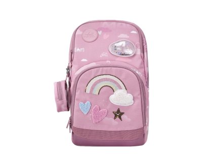 Školský ergonomický batoh, objem 22l, ružový motív dúhy.
