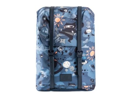 Štýlová ergonomická školská taška od firmy Frii of Norway v retro motíve ninja bojovníka.