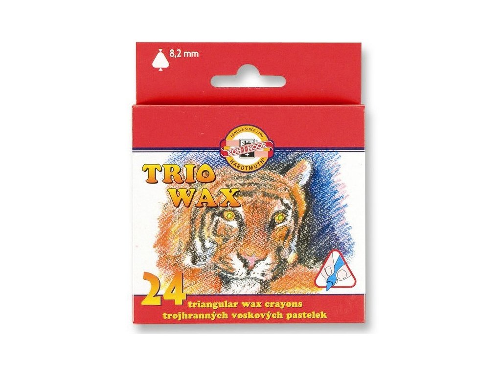 Súprava 24ks 3-hranných voskových pasteliek, určených pre školské a umelecké kreslenie, dĺžka 90 mm, hrúbka 8,2 mm.