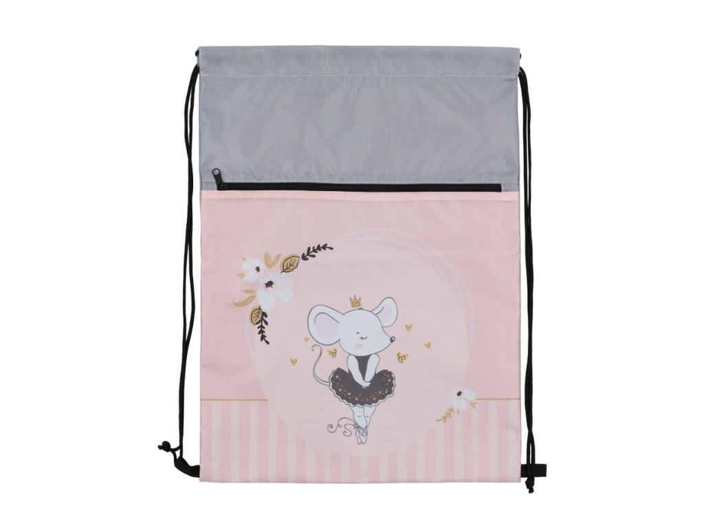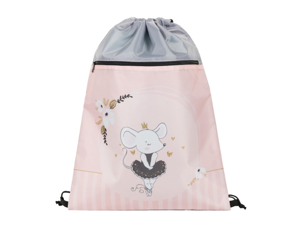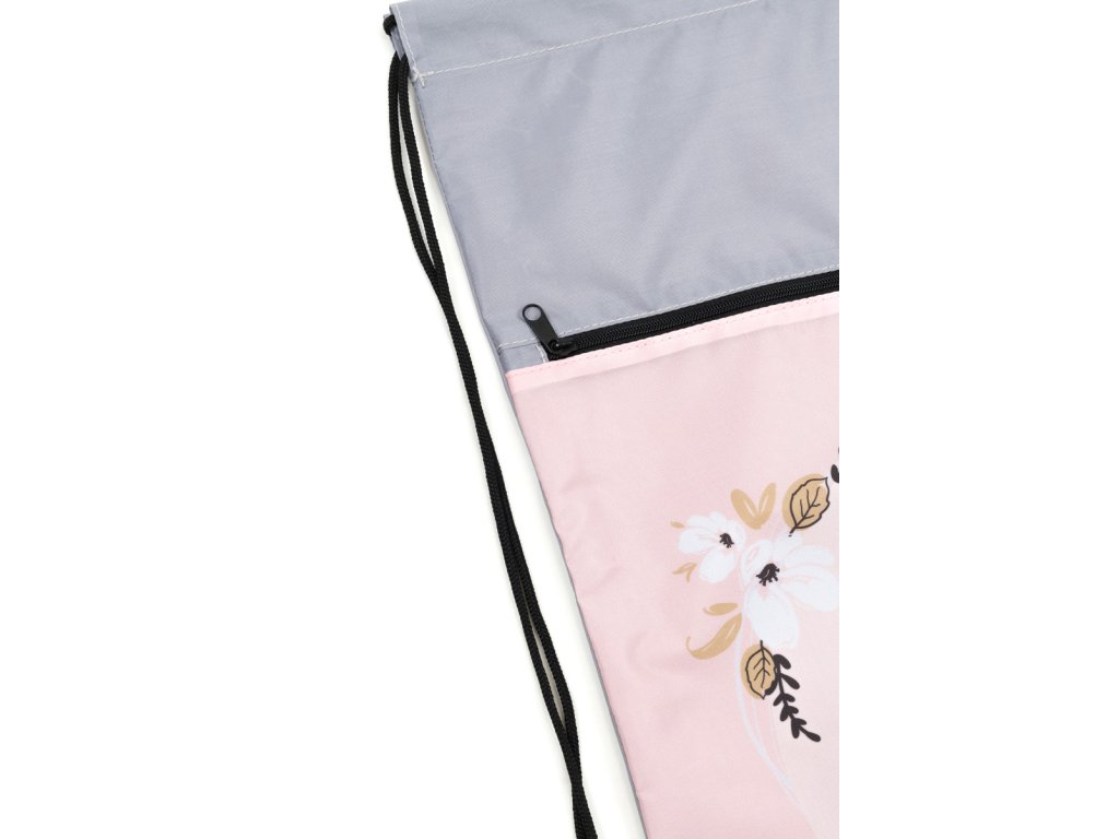 Je vyrobené z pevného, kvalitného materiálu, uzatvára sa na šnúrku, ktorá poslúži ako ramenné popruhy. Na prednej strane má veľkú kapsu na zips.
